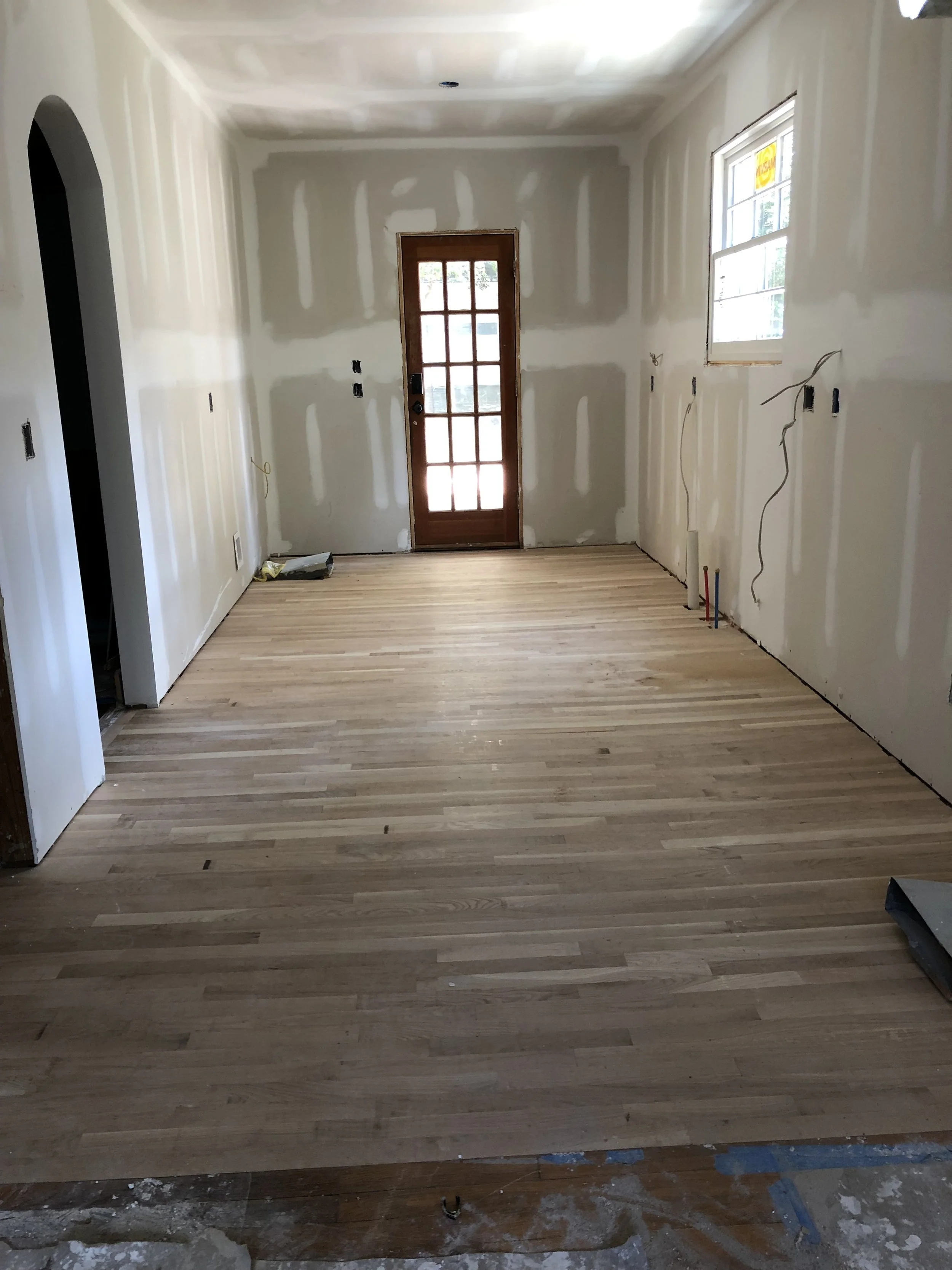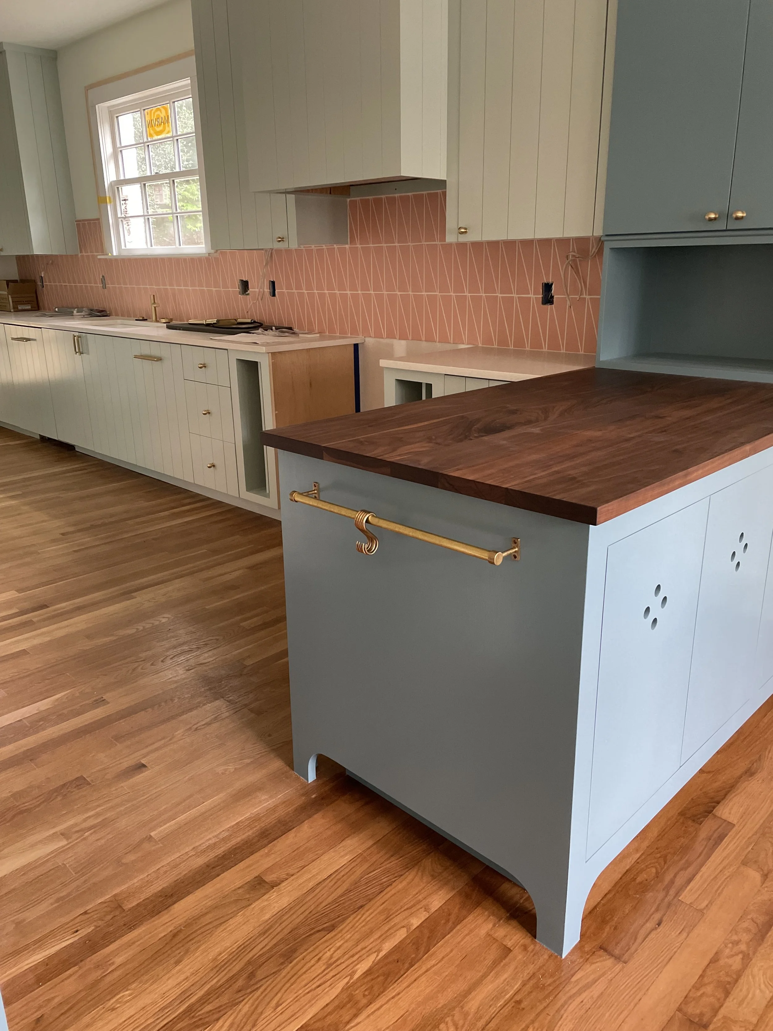 The flooring is in. The cabinets are installed. The walls are painted.